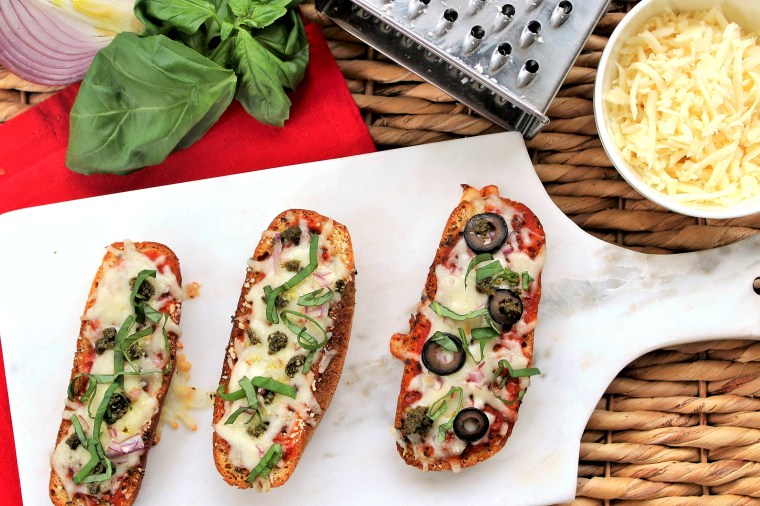 - pizza toppings of your choice (pepperoni, pesto, olives, onions, peppers. sausage)