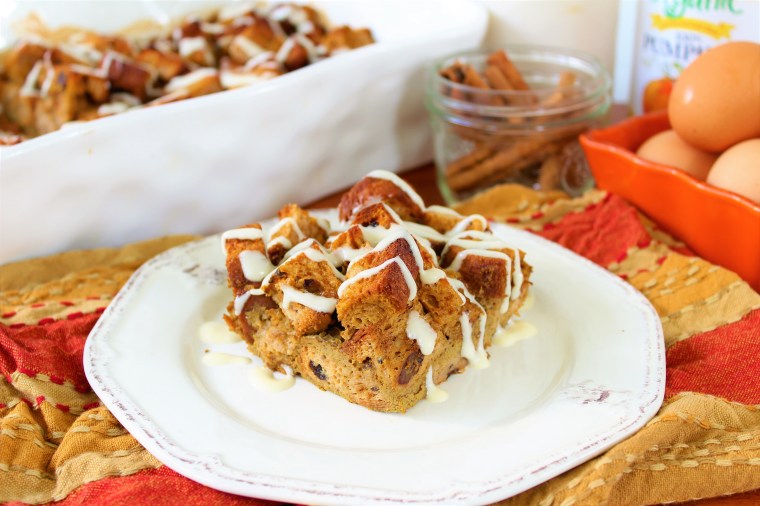 Gluten Free Cinnamon Raisin Pumpkin French Toast Casserole (Dairy Free)