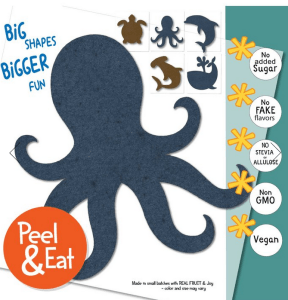 Friends, if you have kids, you are going to want to check out Peaceful Fruits.  I was completely bowled over by their products.  Not only are they delicious and feature nothing but fruit, but they are so stinkin’ adorable. The fruit stickers feature super cute shapes like animals, monsters, and princess themed items. Each comes on its own sheet which allows for easy peeling.  These are perfect for lunchboxes, Halloween treats, road trips, or soccer games.  No dyes, no funky flavors, no sugar, nothing artificial.