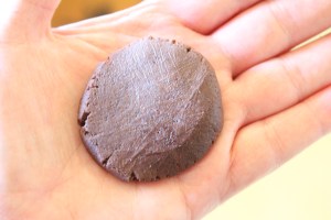 - Using a 1.5 tablespoon spring-loaded cookie scoop, scoop out level scoops of the dough. Gently roll the dough between the palms of your hands to form a ball. Then, gently press down on the ball to form a flattened disc that is approximately 1/4″ thick.