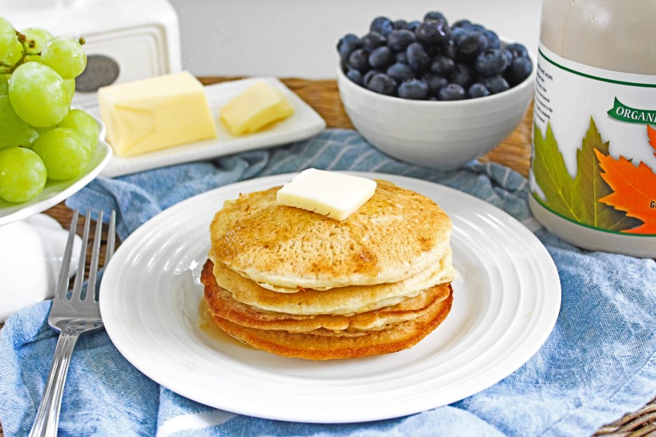 A super light and fluffy gluten free pancake that cooks up quickly and makes a sit down breakfast possible for those busy school day mornings!